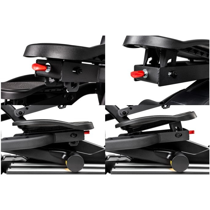- Pédales surdimensionnées avec une inclinaison intérieure de 2 degrés et des repose-pieds rembourrés et pivotants à trois positions gardent le corps dans une posture naturelle et réduisent l’impact sur les articulations et les muscles