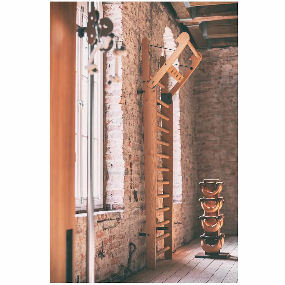 Les essences de bois de chêne, frêne, cerisier et noyer noir américain rendent l'espalier NOHrD plus esthétique et symbolisent un style de vie sport chic.