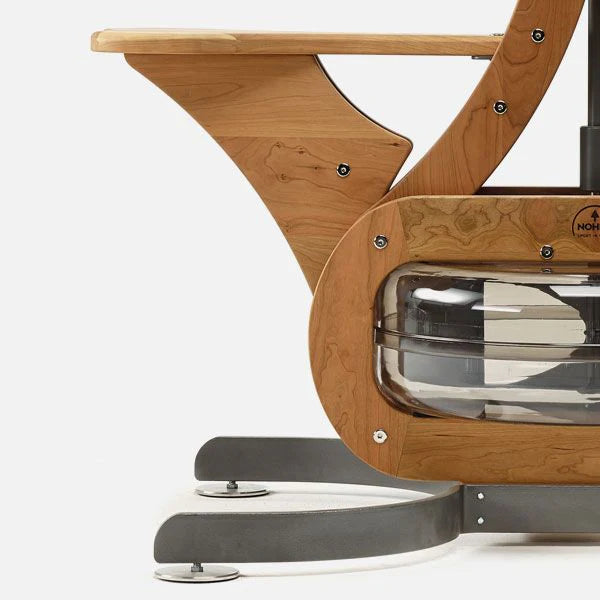 Essences de bois : Merisier - 6 positions d’assises - Compact, Design et efficace - Renforcement musculaire du haut du corps et du système cardio vasculaire - Résistance autorégulatrice - La rotation des manivelles peut se faire en avant, en arrière, simultanément ou individuellement - Le moniteur peut être positionné d’un coté ou de l’autre du WaterGrinder, une puce G-Force contrôle la position de lecture de l’écran - La manivelle peut être ajustée selon 8 positions pour augmenter/diminuer la résistance de base